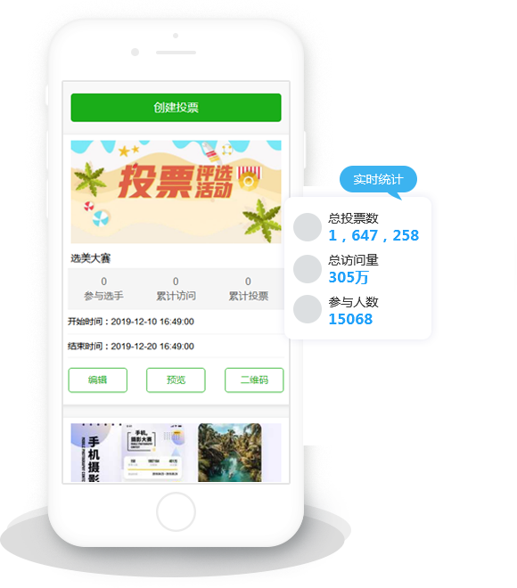 專業第三方微信投票評選活動制作平臺,3分鐘即可制作一場活動,已穩定運行853天,創建活動超200萬場,無任何隱性消費。